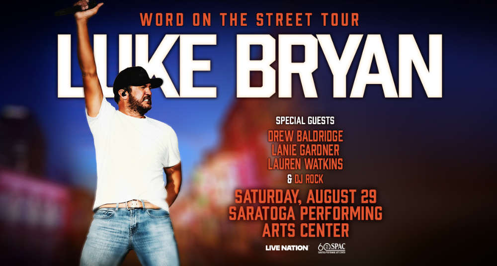 Luke Bryan in concert at SPACWin tickets to one of country's biggest stars. It's a Saturday night concert in Saratoga!
